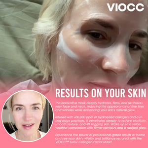 The VIOCC™ Glow Collagen Facial Mask combines powerful, high-performance ingredients to brighten, hydrate, and rejuvenate your skin. Here are the key active ingredients: